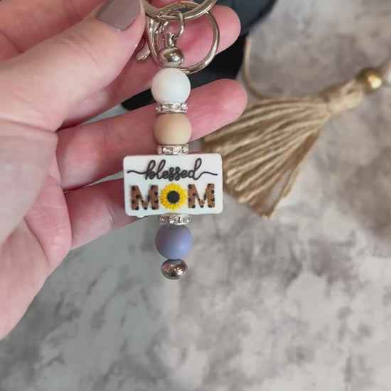Celebrate mom life with this playful Blessed Mom Keychain! Featuring a cheerful sunflower and trendy animal print silicone beads, the centerpiece bead proudly says "blessed mom." It’s a fun, charming accessory that adds a pop of personality to keys or bags while reminding mom she’s truly cherished every day.