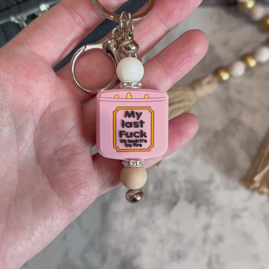 Add a dash of humor and sass to your everyday essentials with this playful silicone bead keychain. Featuring a standout candle bead that cheekily declares "My last fuck. Oh look it's on fire," it’s perfect for anyone who loves to keep things light and laugh a little. Durable and colorful, this keychain not only holds your keys but also sparks smiles wherever you go.